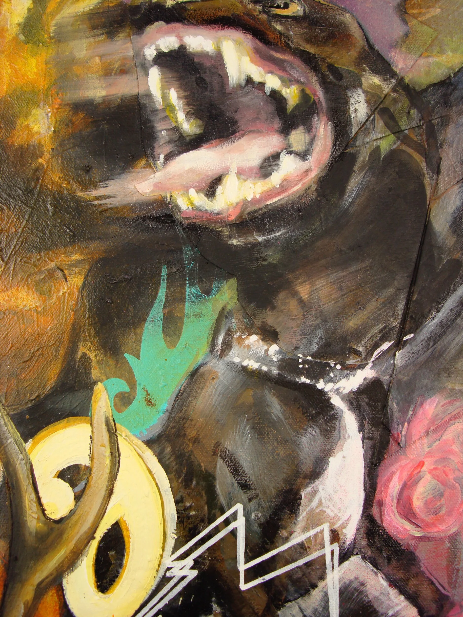 Cloud Hair, oil, acrylic, spray paint & collage on canvas.